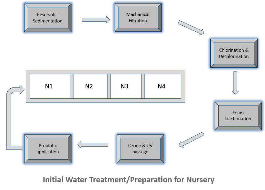 Nursery functions as temporary controlled reservoir where shrimps are allowed to a slow acclimation to the farm conditions. These systems reduce the exposure of shrimps to potential threat (disease, stress factors etc.,) and allow early detection of any health-related issues.