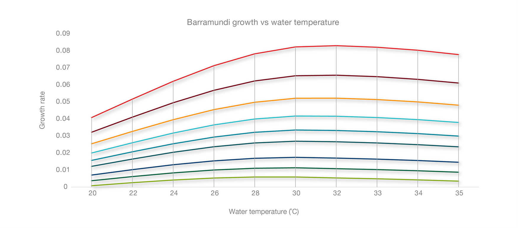 “The growth model is now more robust for all growth predictions and improved for large barramundi (>2 kg). Furthermore, it was interesting to see that small barramundi have a higher optimum temperature than large barramundi, which is something we have seen in other species.”