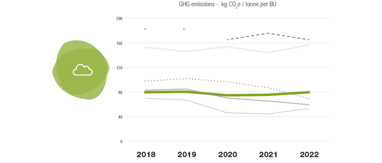 When it comes to carbon footprint reporting, in 2022 we have further improved our reporting templates. These are actively used to report carbon footprint values of our products, both on demand and on a regular basis. The reporting templates have been well received by our customers as they give transparent insights into the main drivers behind the footprint, not only per product, but also per life cycle stage or raw material contributions. In addition, the calculation methodology and used data sources are documented.