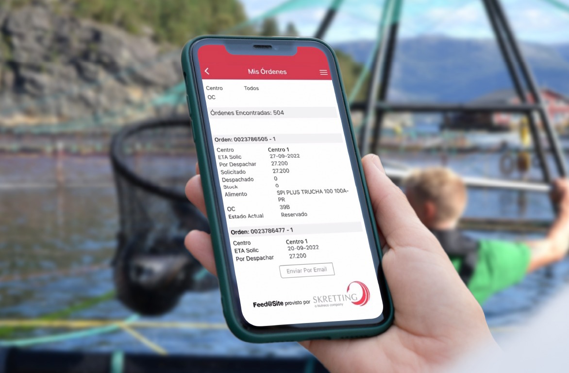 Con ese objetivo en mente, Skretting Chile trabajó en la co-creación de la aplicación móvil Feed@Site (Feed at Site), una innovadora solución que permite, vía geolocalización satelital, conocer la ubicación exacta de la nave que transporta el alimento desde la Región de Los Lagos hacia el sur, con una actualización constante cada una hora.