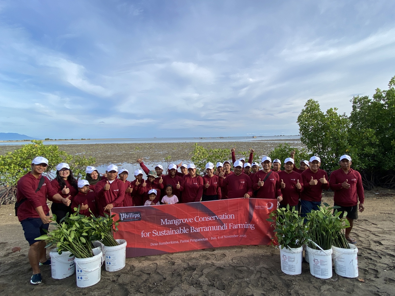 Bali, 6 November 2025 — Skretting Indonesia kembali menunjukkan komitmennya terhadap keberlanjutan lingkungan dengan berpartisipasi dalam kegiatan penanaman bakau bersama Phillips Seafoods Indonesia. Kegiatan ini dilaksanakan di Pantai Pengametan, Bali, dengan melibatkan 40 peserta yang bersama-sama menanam 730 bibit bakau.