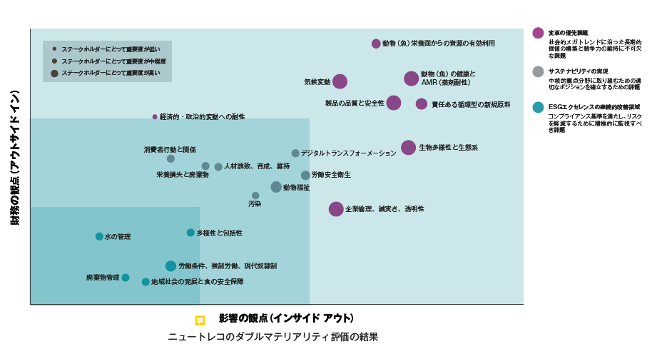 と財務の観点の両方に焦点を当てました。その結果、ニュートレコにとって重要度の高い課題を以下のように特定しました。