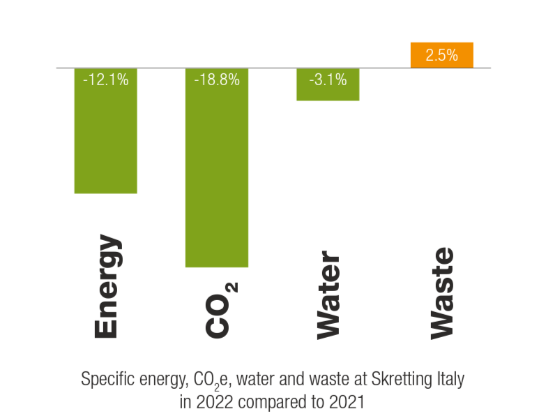 長年にわたり、スクレッティング イタリアはスクレッティングにおけるサステナビリティのフロントランナーとして認識されています。昨年はKPIの面から見て特に大きな成功を収めました。チームは工場内で多くの改善プロジェクトを実施し、飼料1トンあたりのエネルギー、CO2排出量、水の削減を実現しました。ドライヤーの最適化、定期的な5S、オペレーショナル・エクセレンス・プロジェクトをうまく実施できたことが、この成功の重要な構成要素でした。また、敷地内での太陽光発電と、小型のサービス用ディーゼルボイラーを電気ボイラーに交換することで、CO2排出量をさらに削減できました。