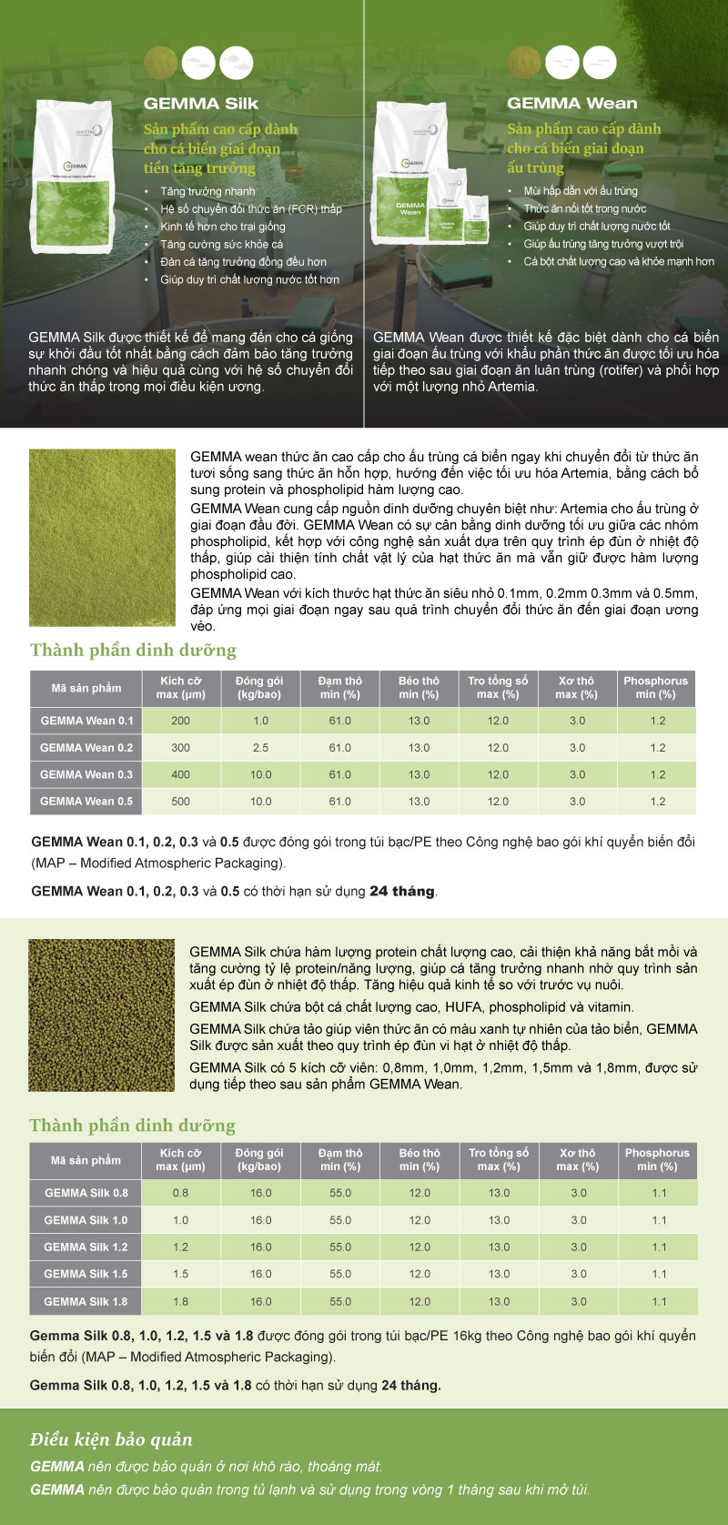 🐟 Dinh dưỡng tương đồng thức ăn tự nhiên: mỗi hạt GEMMA cung cấp thành phần gần giống khẩu phần tự nhiên của ấu trùng.