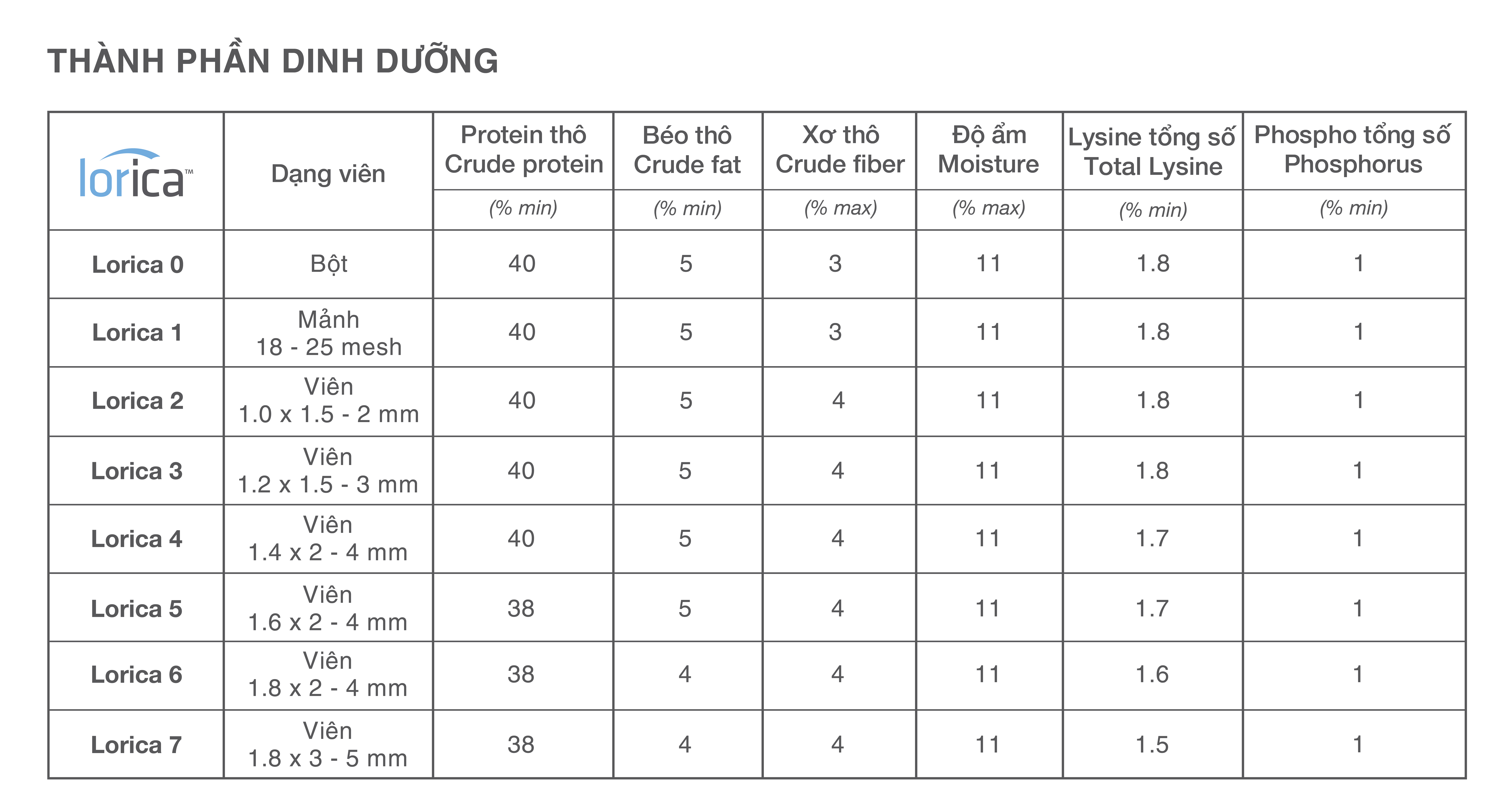 Lorica được bổ sung hỗn hợp các thành phần chức năng cải tiến được thiết kế để bảo vệ tôm trong các thời điểm bất lợi, bao gồm cả quá trình sang ao và vận chuyển.