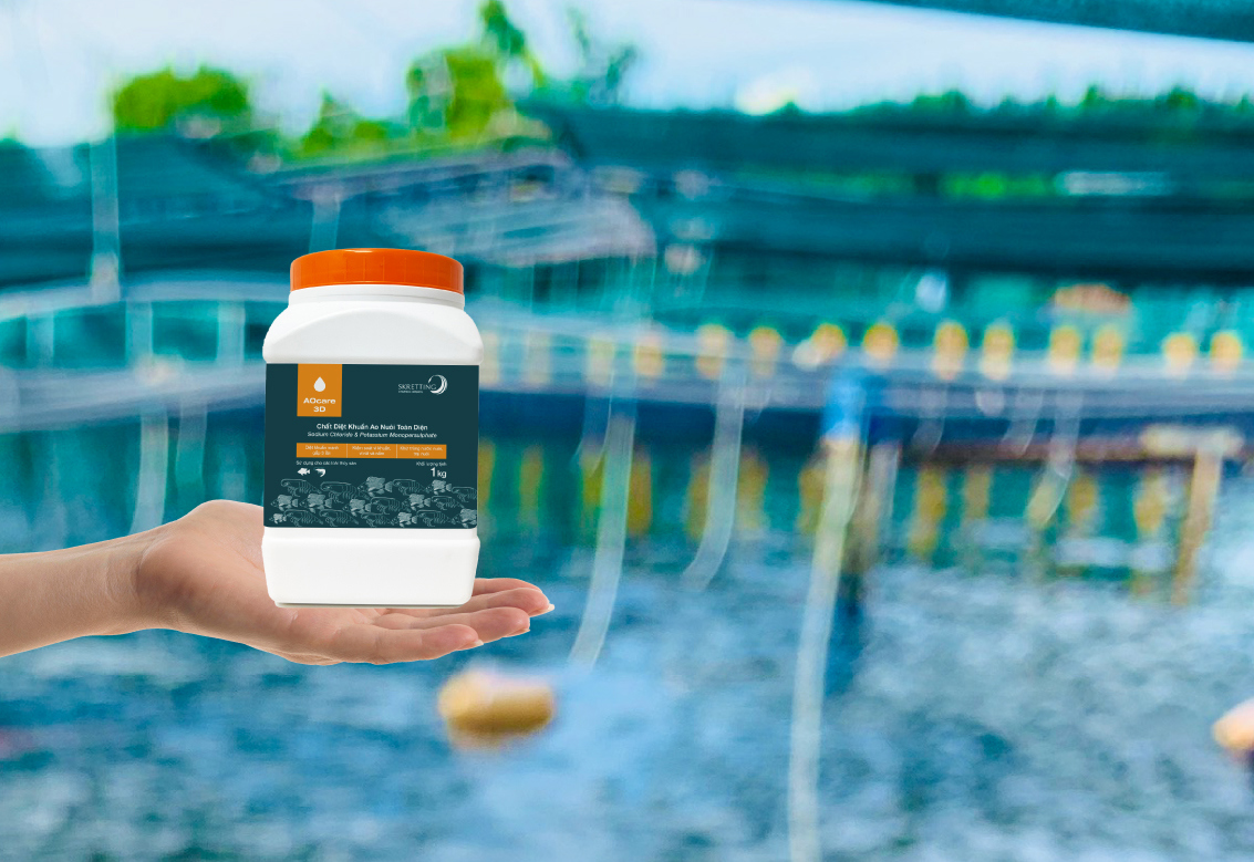 Aocare 3D - Chất diệt khuẩn ao nuôi toàn diện, nhằm giúp người nuôi kiểm soát được tối đa mần bệnh thông qua việc xử lý nước ao nuôi đúng cách và đúng quy trình kỷ thuật nuôi. Aocare 3D là chất diệt trùng phổ rộng diệt được nhiều loại vi khuẩn, virus và nấm, một sản phẩm mới chuẩn bị tung ra thị trường của Skretting, nhằm giúp giảm tối đa mầm bệnh trong điều kiện nuôi khắc nghiệt, sử dụng an toàn cho tôm, cá trong suốt chu kỳ nuôi, cải thiện năng suất và tỷ lệ sống của tôm cá. Sản phẩm đa chức năng có thể sử dụng để làm sạch và khử trùng nguồn nước, thiết bị, dụng cụ và trại nuôi.