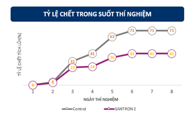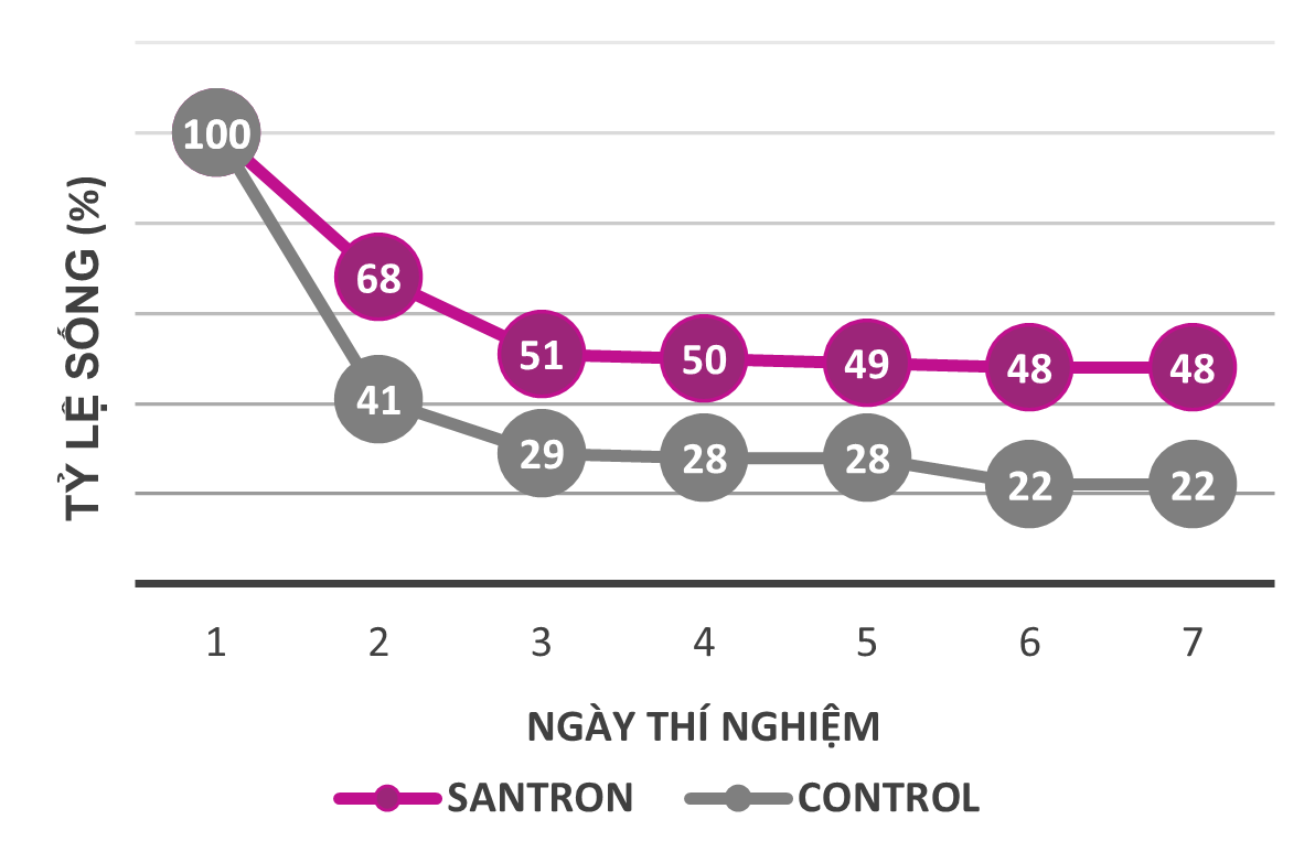 Santron giảm đáng kể tỷ lệ chết của cá rô phi khi nhiễm vi khuẩn Streptococcus agalactiae.