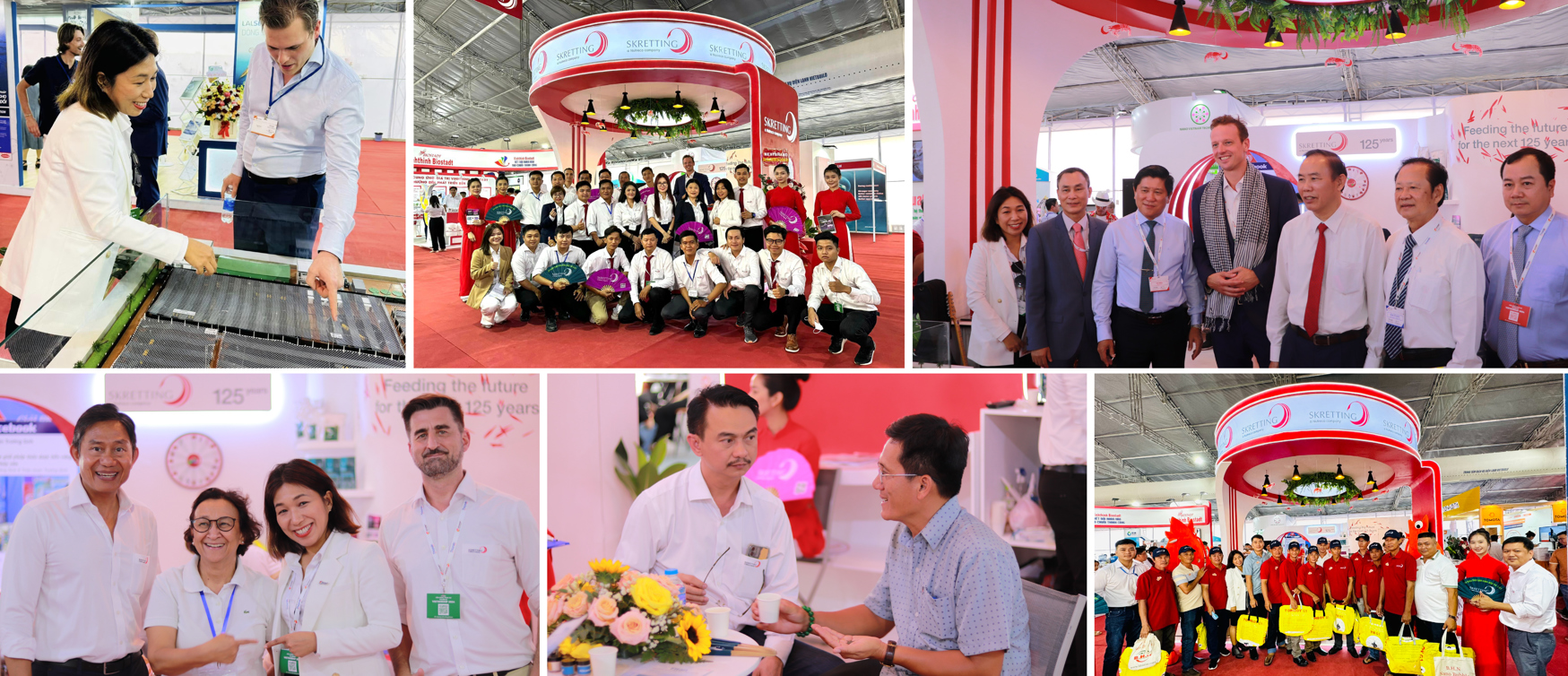 Thiết kế gian hàng của Skretting Việt Nam nổi bật tại vị trí trung tâm. Tại đây, khách tham quan sẽ được tư vấn cặn kẽ về những bộ giải pháp nuôi tôm của Skretting Việt Nam như: Mô hình nuôi tôm bền vững SUCCESS; các sản phẩm cho tôm; bộ giải pháp xử lý môi trường và hỗ trợ sức khỏe.