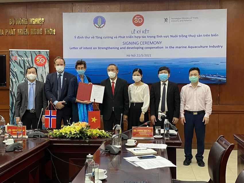 Ngày 21/5, nhân kỷ niệm 50 năm thiết lập quan hệ ngoại giao (1971-2021) và gần 40 năm hợp tác song phương trong lĩnh vực nuôi trồng thủy sản Na Uy - Việt Nam, Đại sứ quán Hoàng gia Na Uy, Tổ chức Innovation Norway, Bộ Nông nghiệp và Phát triển nông thôn Việt Nam và Phòng Thương mại và Công nghiệp Việt Nam (VCCI) cũng đã phối hợp tổ chức Diễn đàn trực tuyến với chủ đề “Phát triển ngành nuôi biển quy mô công nghiệp của Việt Nam”.