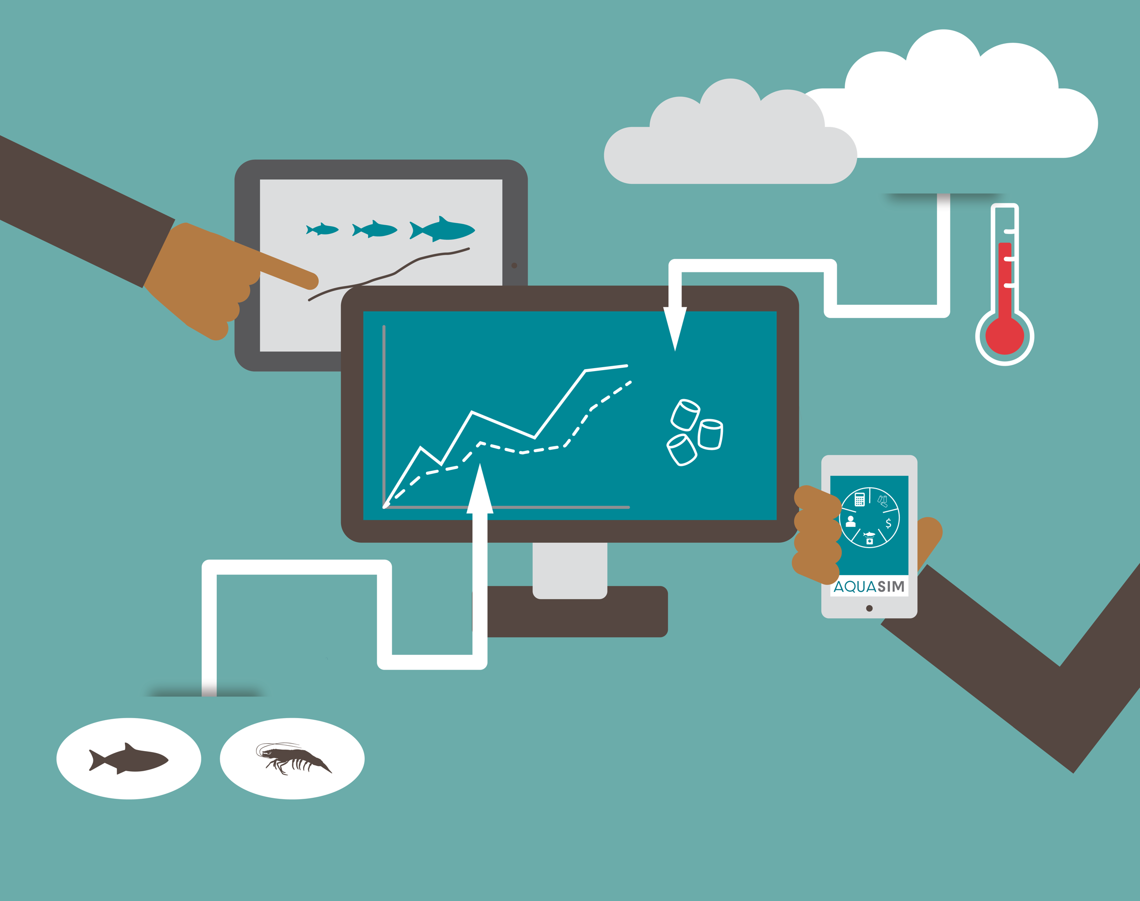 Dựa trên yếu tố này, phần mềm Aquasim được Skretting phát triển như một nền tảng kỹ thuật số giúp cung cấp cho người nuôi những dữ liệu hàng ngày để đạt tốc độ tăng trưởng tối đa. Aquasim được trang bị các Đường tăng trưởng chuẩn cho một số loài cá biển. Trong đó, cá chẽm là loài mới nhất mà chúng tôi vừa hoàn thiện đường chuẩn này. Nó dựa trên dữ liệu từ sự tăng trưởng của cá chẽm tại nhiều vị trí, kích thước và nhiệt độ khác nhau. Mô hình tăng trưởng sẽ cung cấp cho người nuôi ước tính tốt nhất cho lượng thức ăn hàng ngày dựa trên trọng lượng của cá và nhiệt độ môi trường. Tuy nhiên, Aquasim có thể làm được nhiều hơn thế. Ứng dụng này có thể hỗ trợ người nuôi với các mô phỏng, tiên lượng và đánh giá so sánh.