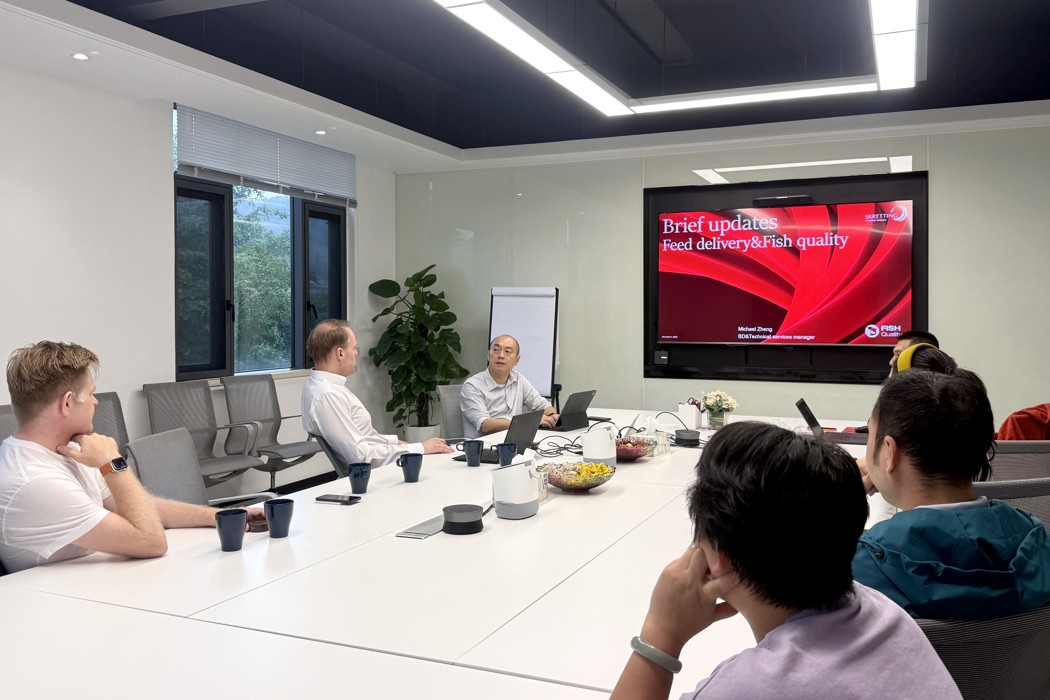 交流伊始,双方在欢迎会上展开初步沟通,思凯汀中国区总经理杨剑青、水产商务总监陈小星对诺帝克水产代表团表示热烈欢迎,相关部门负责人还详细介绍了思凯汀的业务布局与核心实力。此次交流聚焦RAS养殖模式下饲料营养方案与鱼类生长、鱼肉品质以及养殖挑战,为后续的深化合作奠定了良好基础。